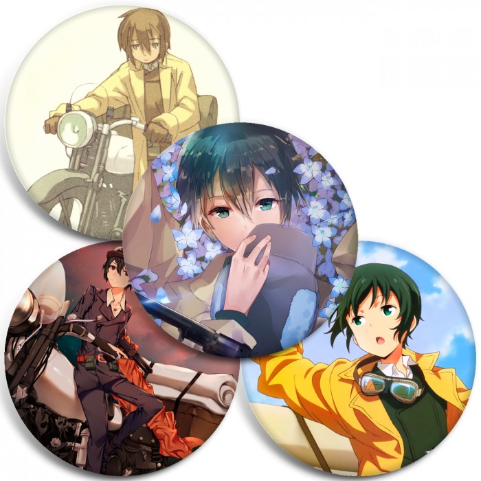 Несколько видов значков с персонажами вселенной Путешествие Кино.