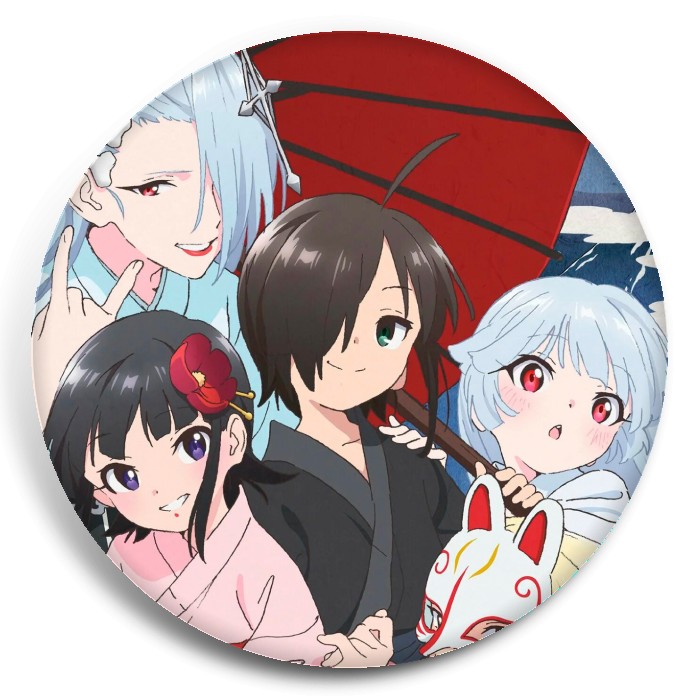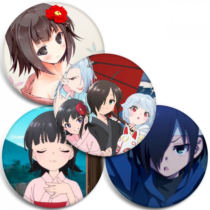 Несколько видов значков с персонажами вселенной Юный Китаро и дневник о ёкаях.