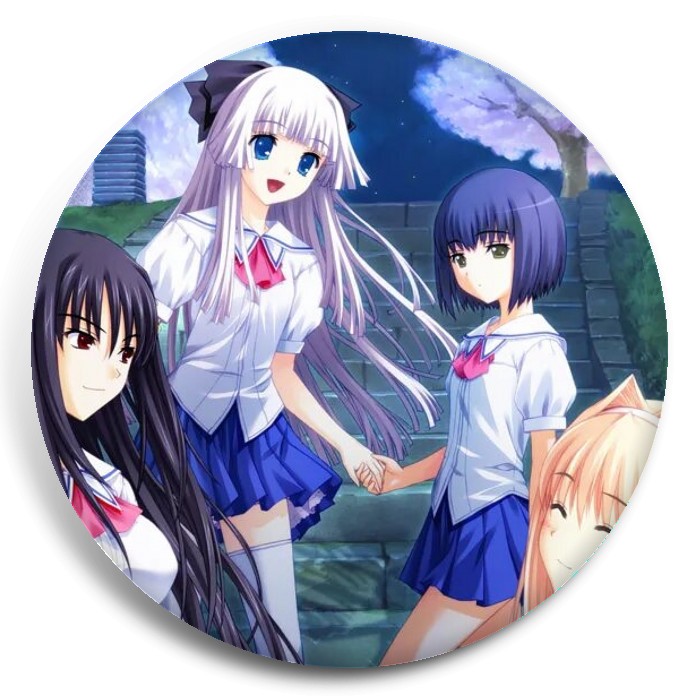 Несколько видов значков с персонажами вселенной Обещание этому синему небу.