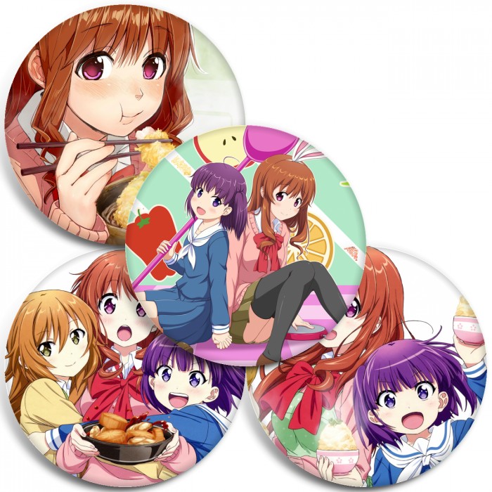 Несколько видов значков с персонажами вселенной Граффити счастливой кухни.
