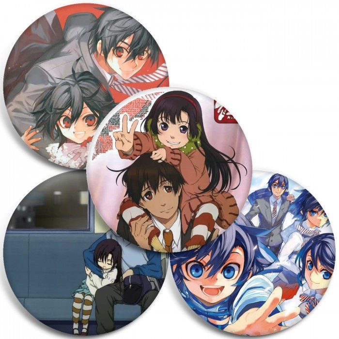 Несколько видов значков с персонажами вселенной Курэнай.