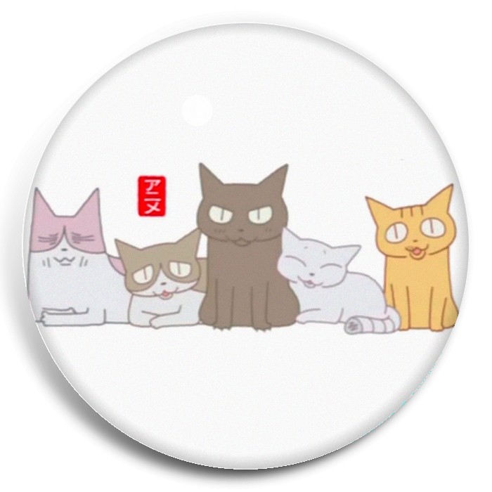 Несколько видов значков с персонажами вселенной Кошачьи истории.