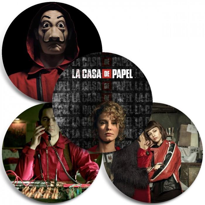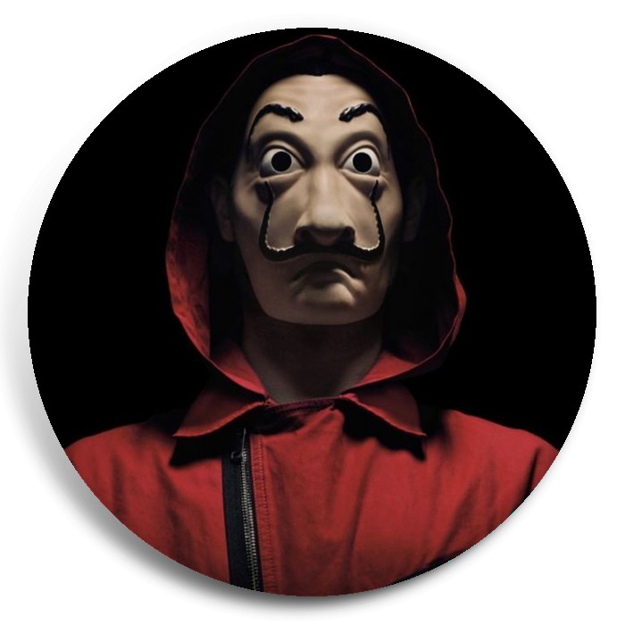 Несколько видов значков с персонажами вселенной Бумажный дом.