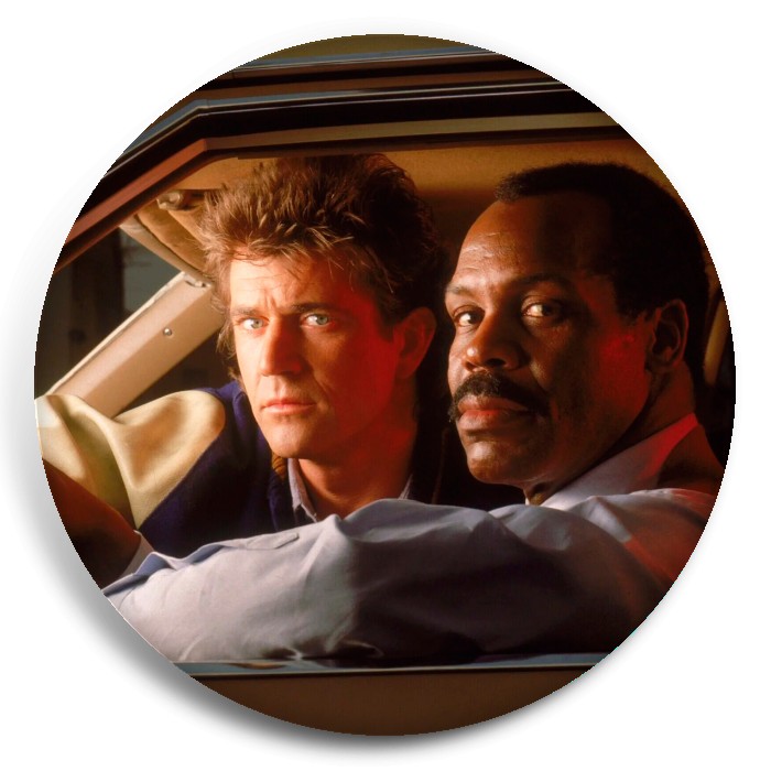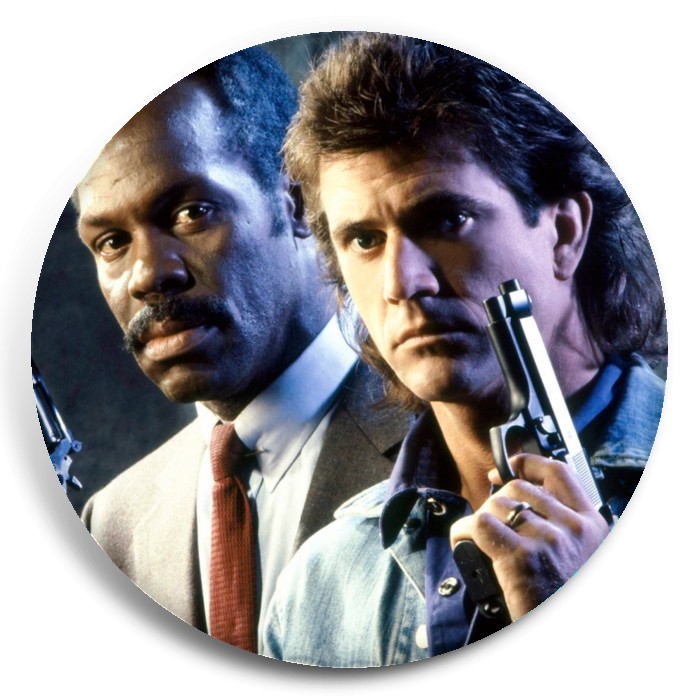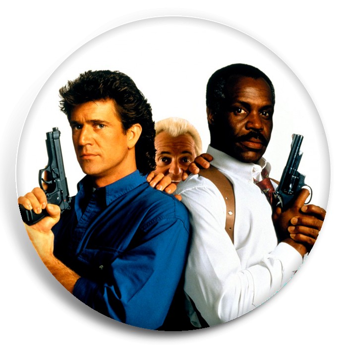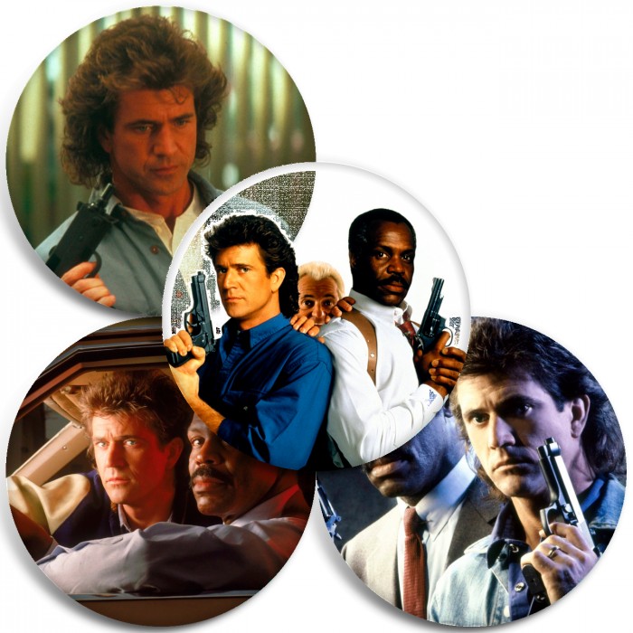 Несколько видов значков с персонажами вселенной Смертельное оружие.