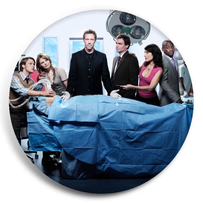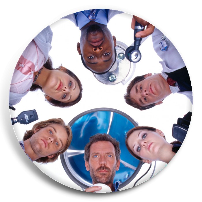 Несколько видов значков с персонажами вселенной Доктор Хаус.