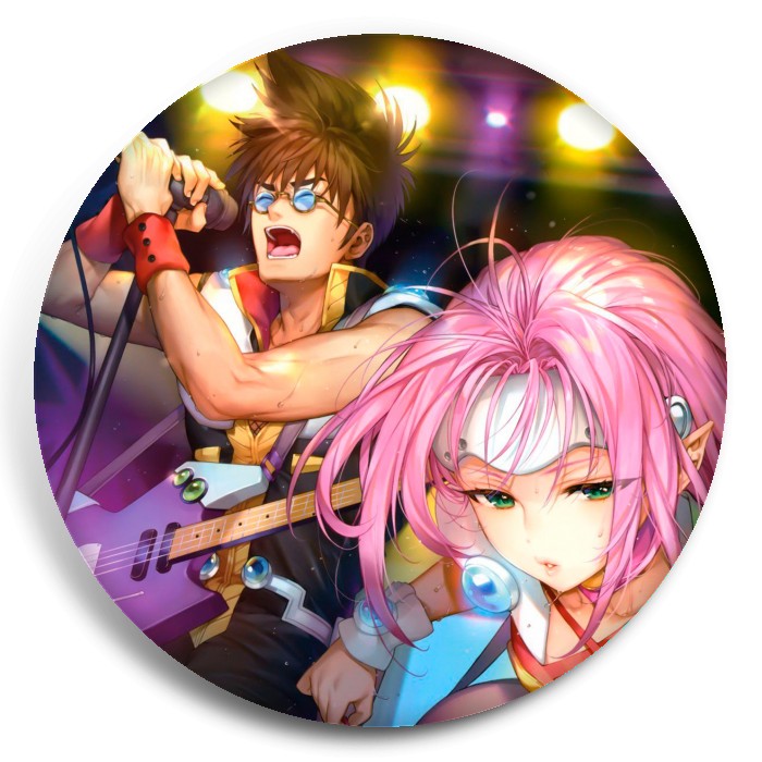 Несколько видов значков с персонажами вселенной Макросс 7.