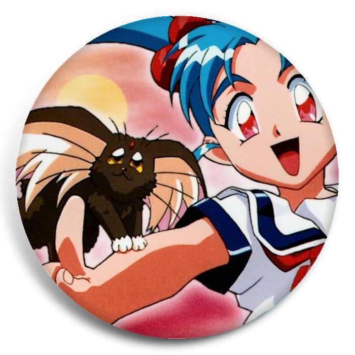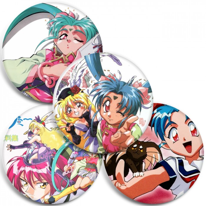 Несколько видов значков с персонажами вселенной Девочка-волшебница Красотка Самми.