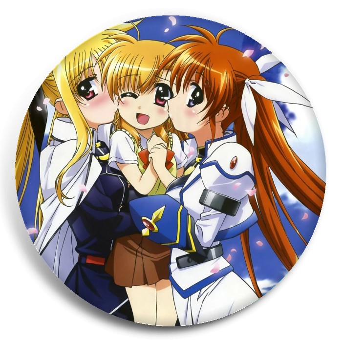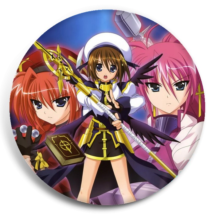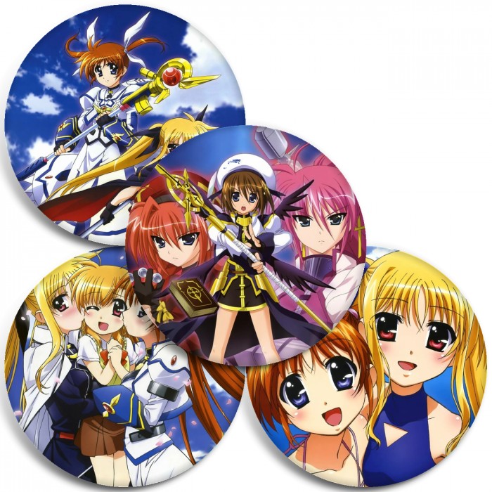 Несколько видов значков с персонажами вселенной Лиричная волшебница Наноха.