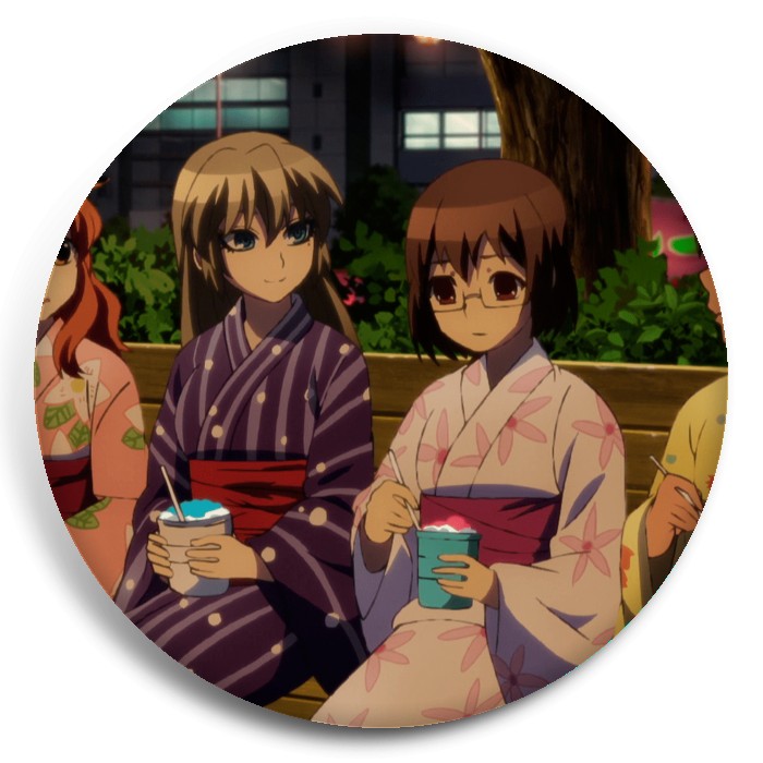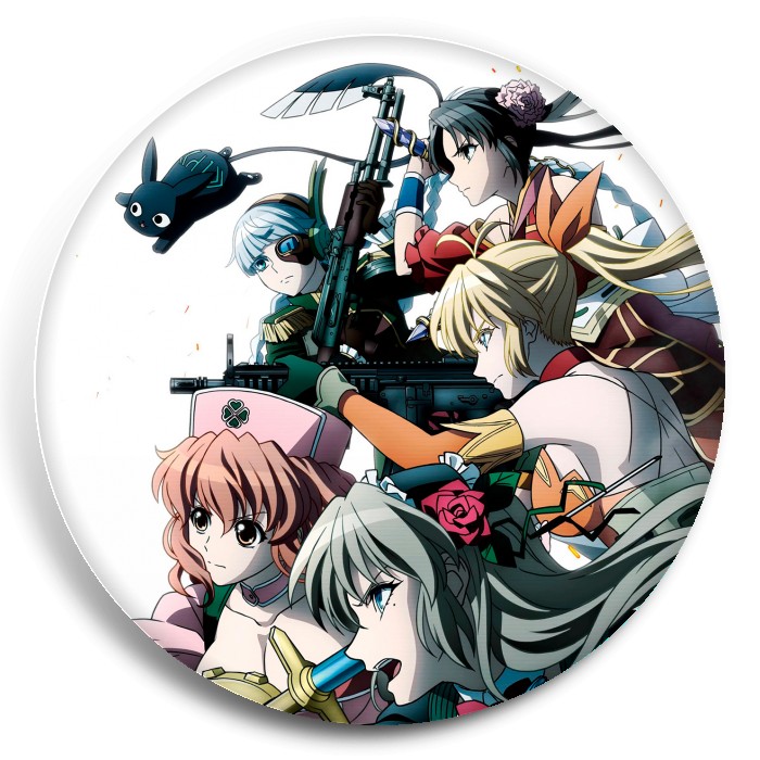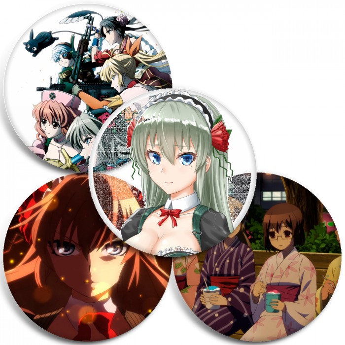Несколько видов значков с персонажами вселенной Девочки-волшебницы: Специальная операция.