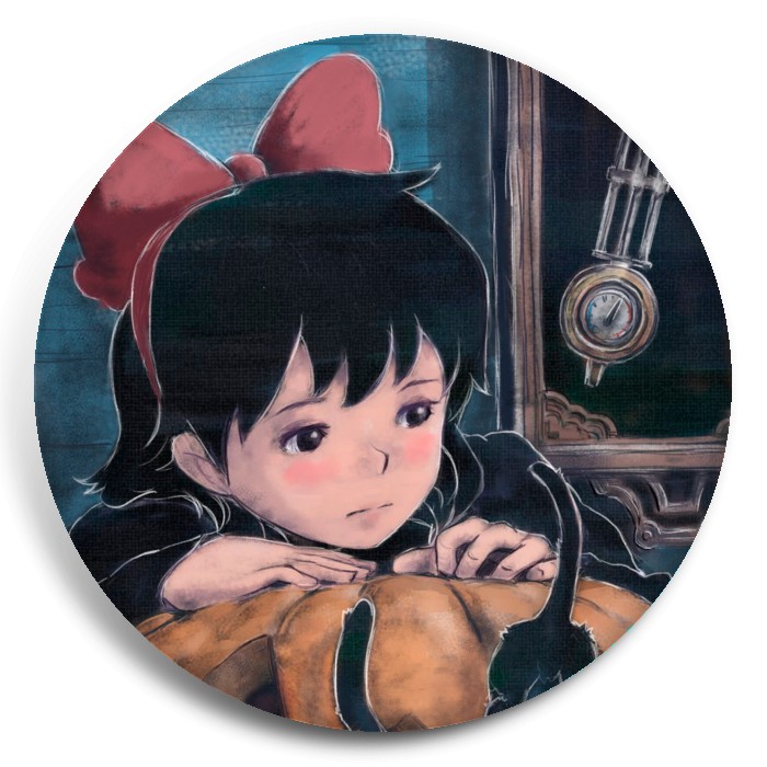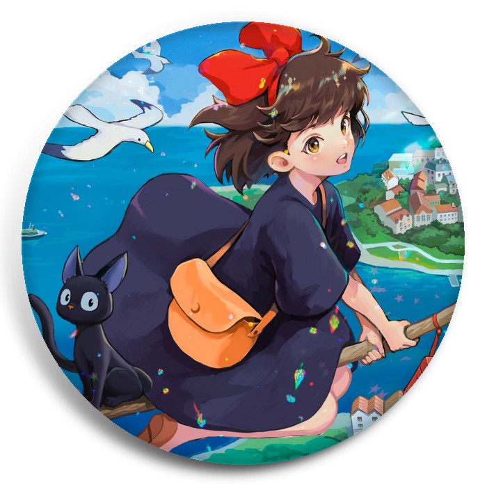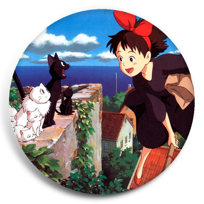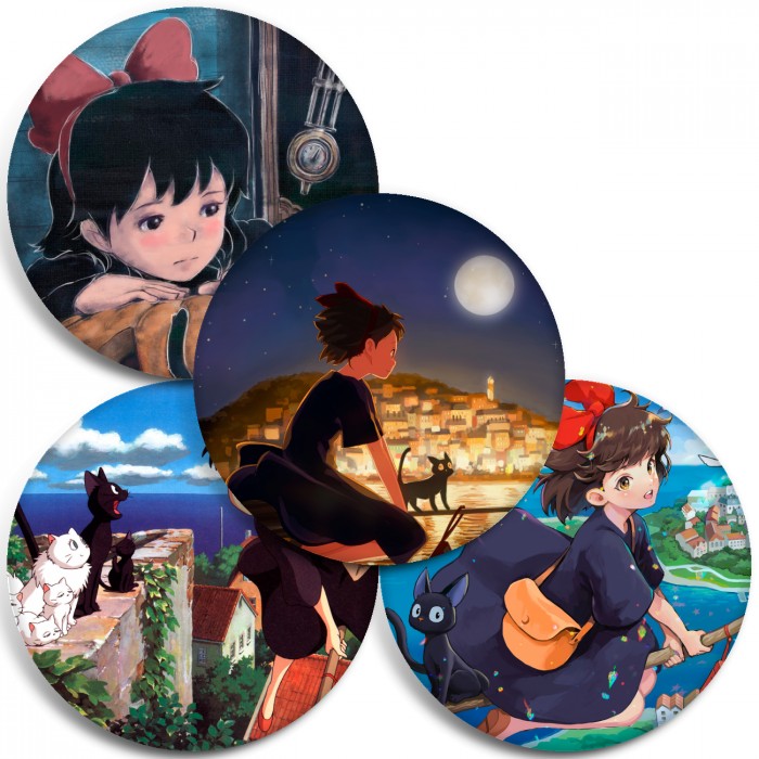 Несколько видов значков с персонажами вселенной Ведьмина служба доставки.