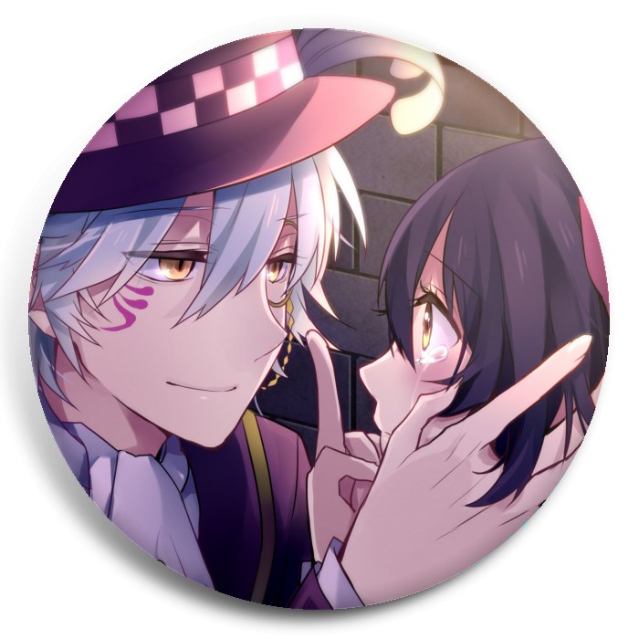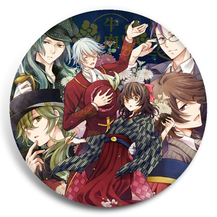 Несколько видов значков с персонажами вселенной Любовь эпохи Мэйдзи.