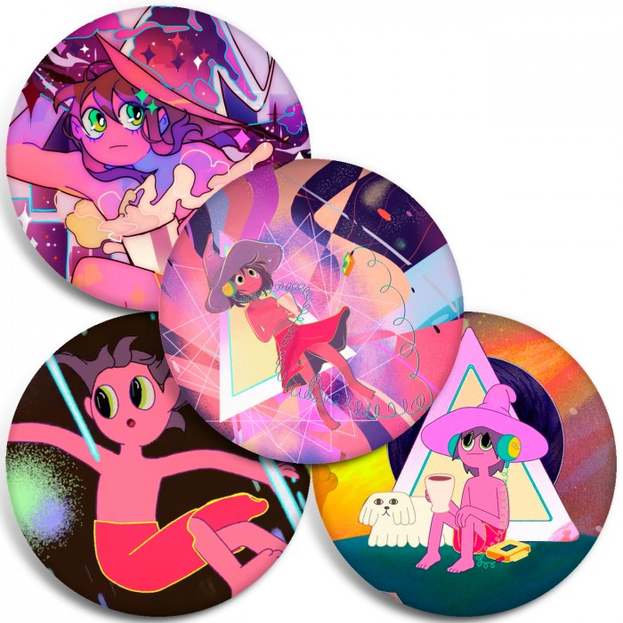 Несколько видов значков с персонажами вселенной Полночные откровения.