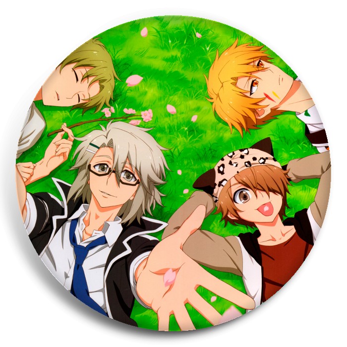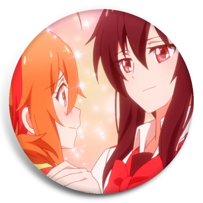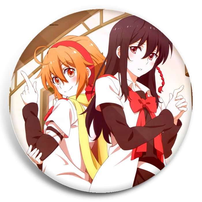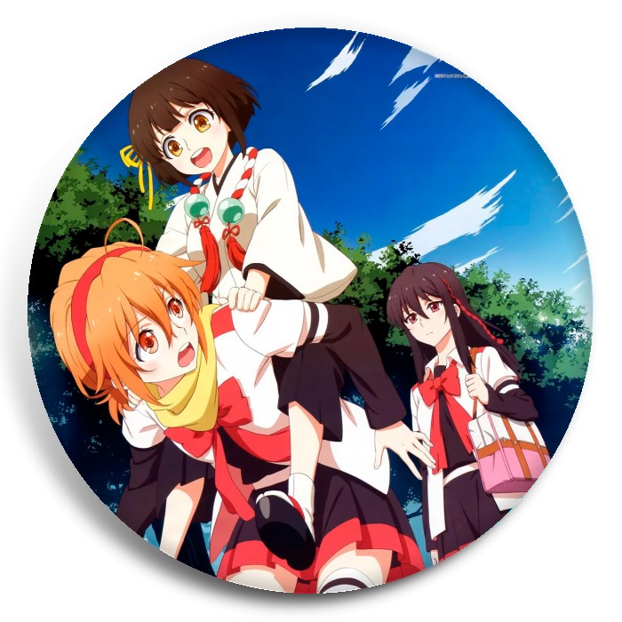 Несколько видов значков с персонажами вселенной Сюита школы Микагура.