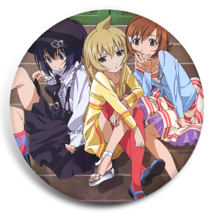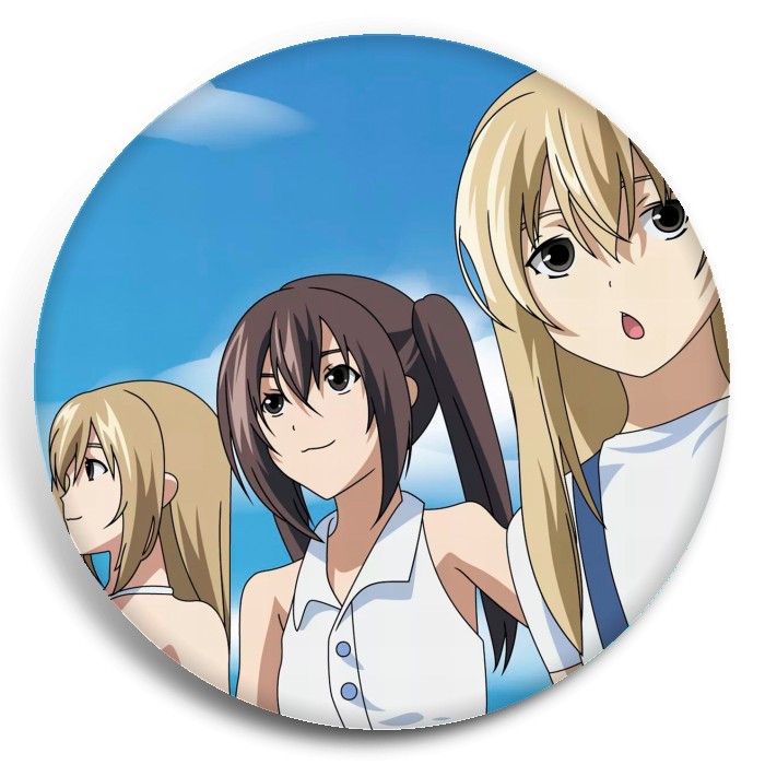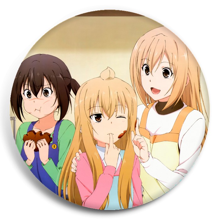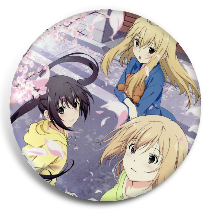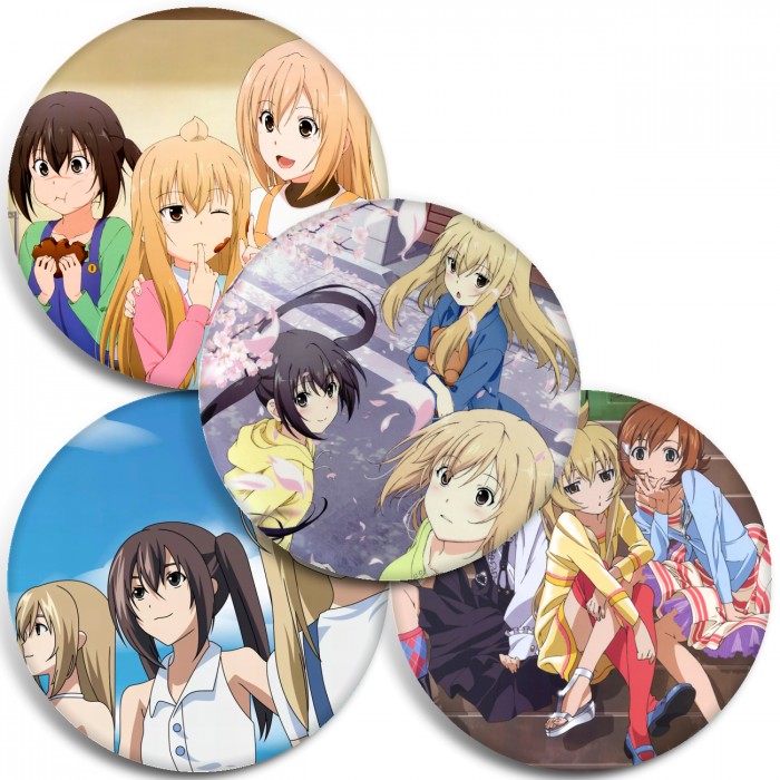 Несколько видов значков с персонажами вселенной Сёстры Минами.