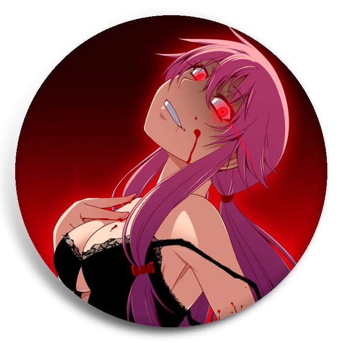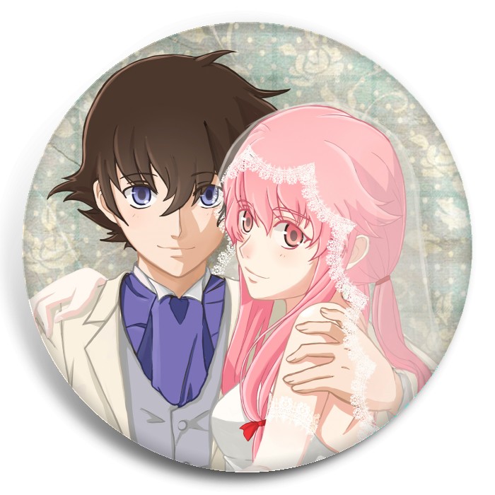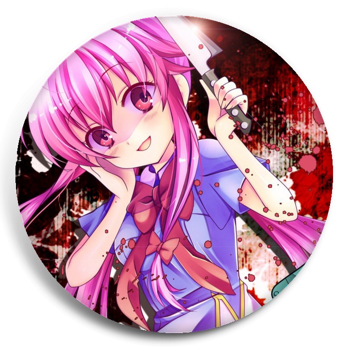 Несколько видов значков с персонажами вселенной Дневник будущего.
