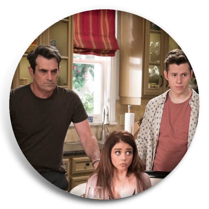 Несколько видов значков с персонажами вселенной Американская семейка.
