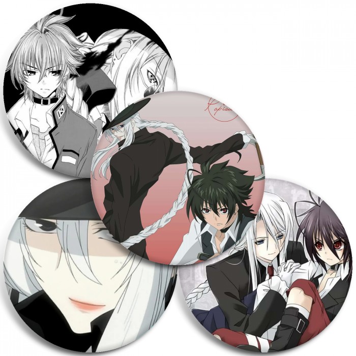 Несколько видов значков с персонажами вселенной Монохромный Фактор.
