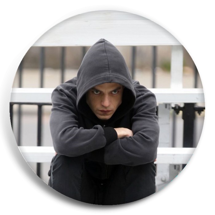 Несколько видов значков с персонажами вселенной Мистер Робот.