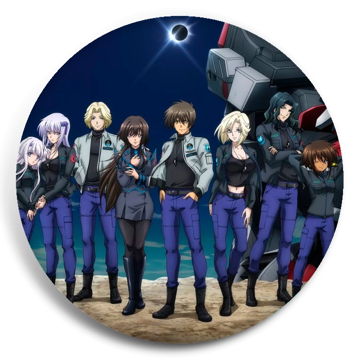 Несколько видов значков с персонажами вселенной Muv-Luv.