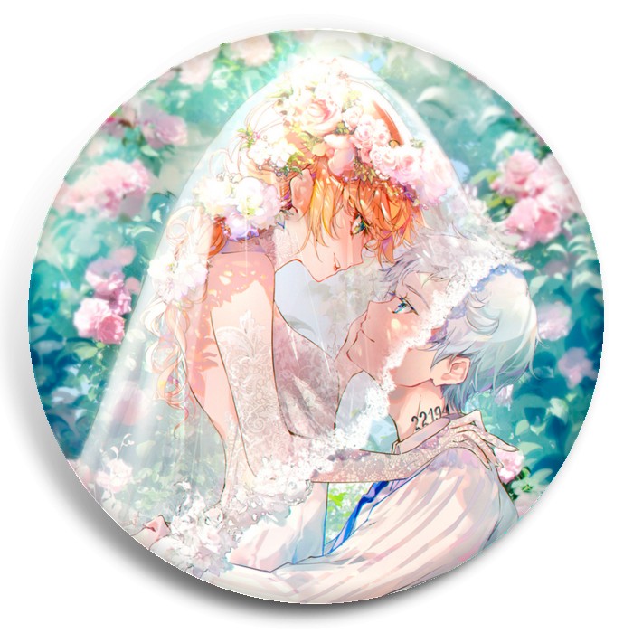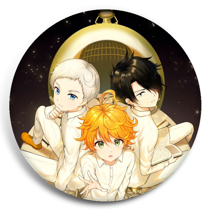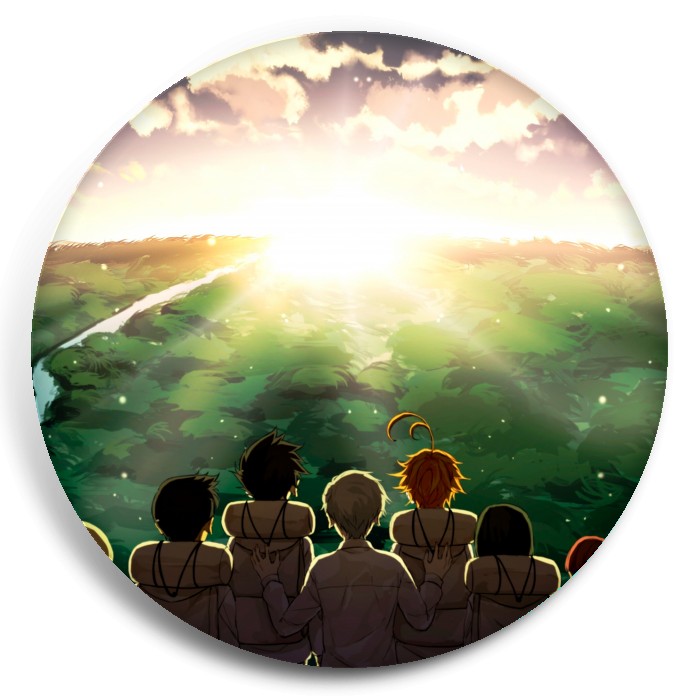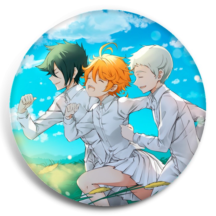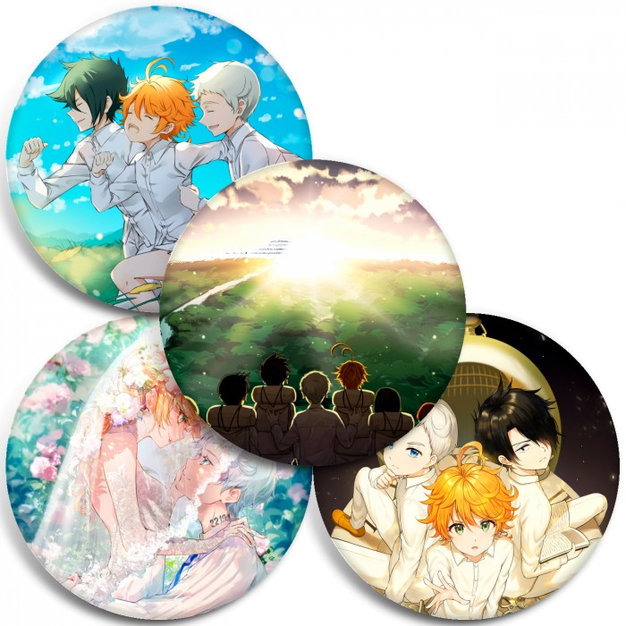 Несколько видов значков с персонажами вселенной Обещанный Неверленд.