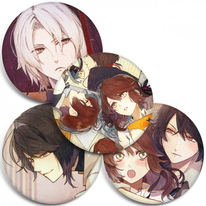 Несколько видов значков с персонажами вселенной Весы Нил Адмирари: Загадочная история Тэйто.