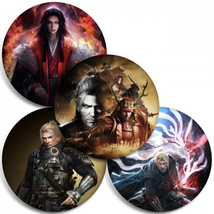 Несколько видов значков с персонажами вселенной Nioh.