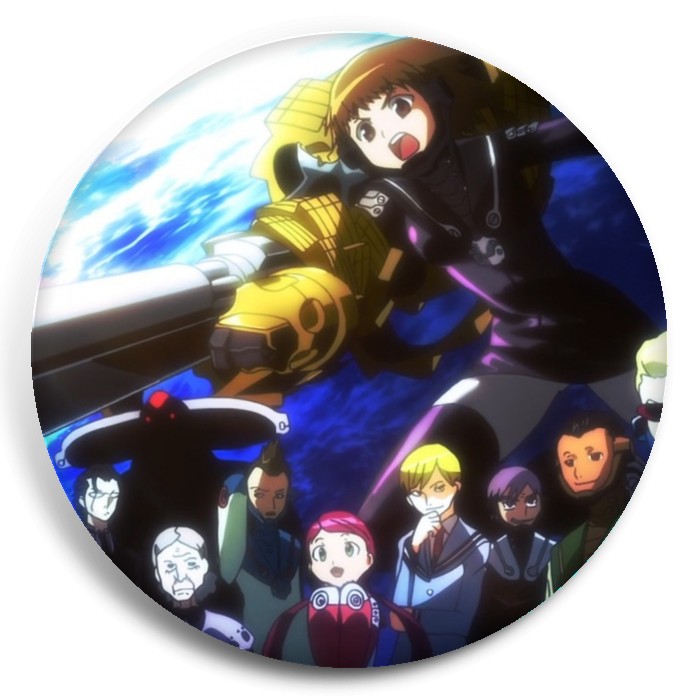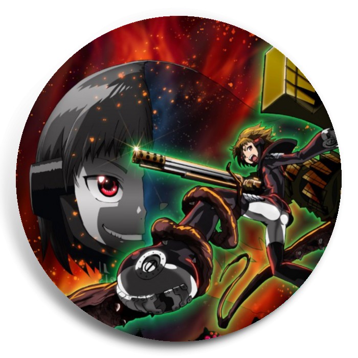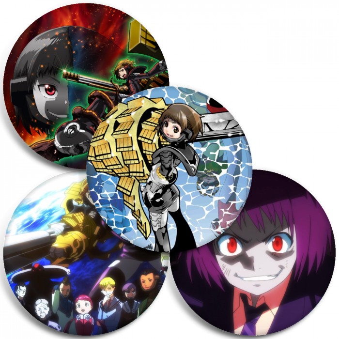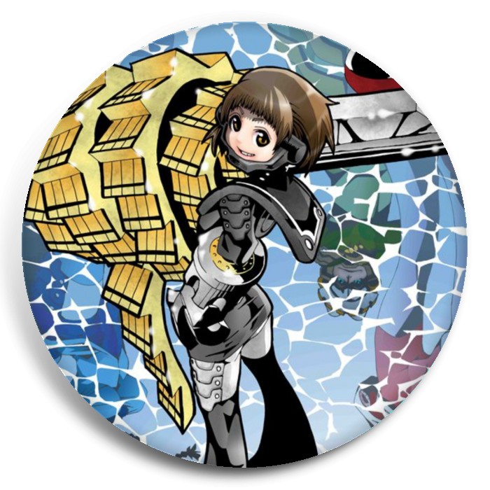 Несколько видов значков с персонажами вселенной Пушка Нобунаги.
