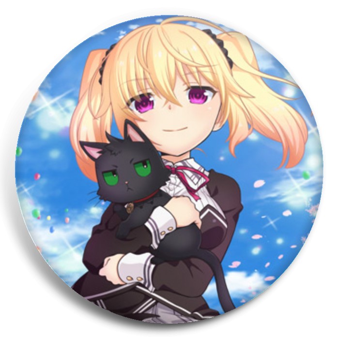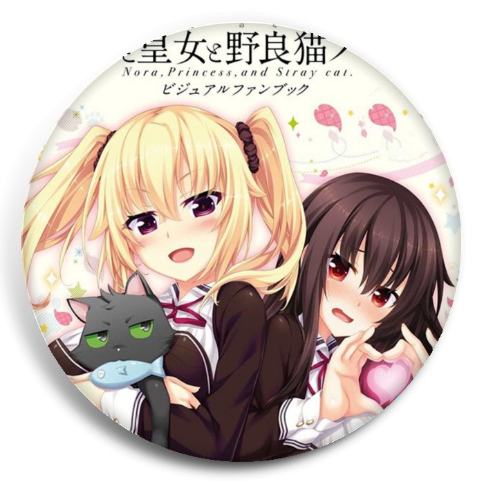 Несколько видов значков с персонажами вселенной Нора; принцесса и бродячая кошка.