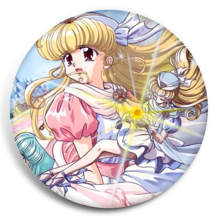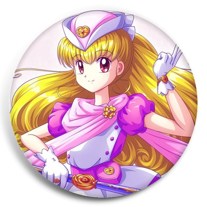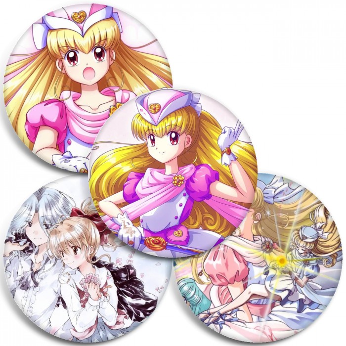 Несколько видов значков с персонажами вселенной Медсестра-ангел Ририка SOS.
