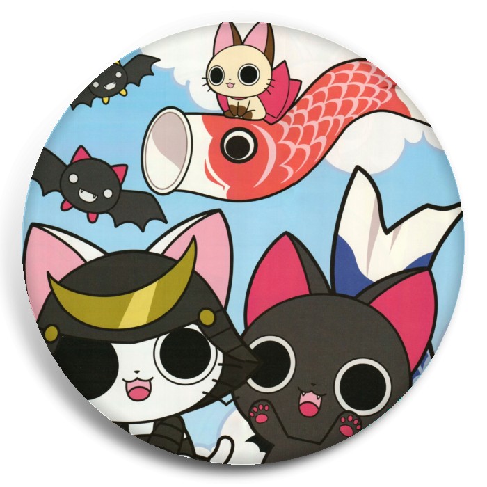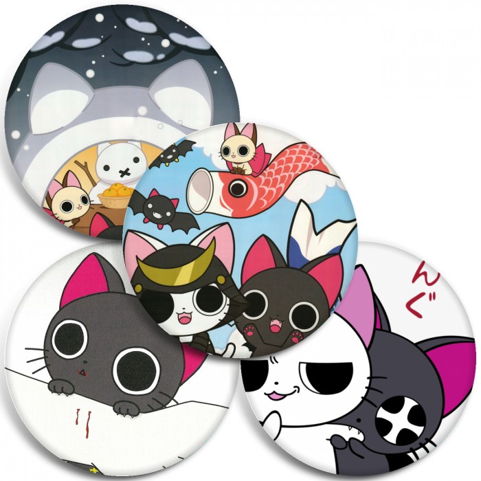 Несколько видов значков с персонажами вселенной Мяупырь.