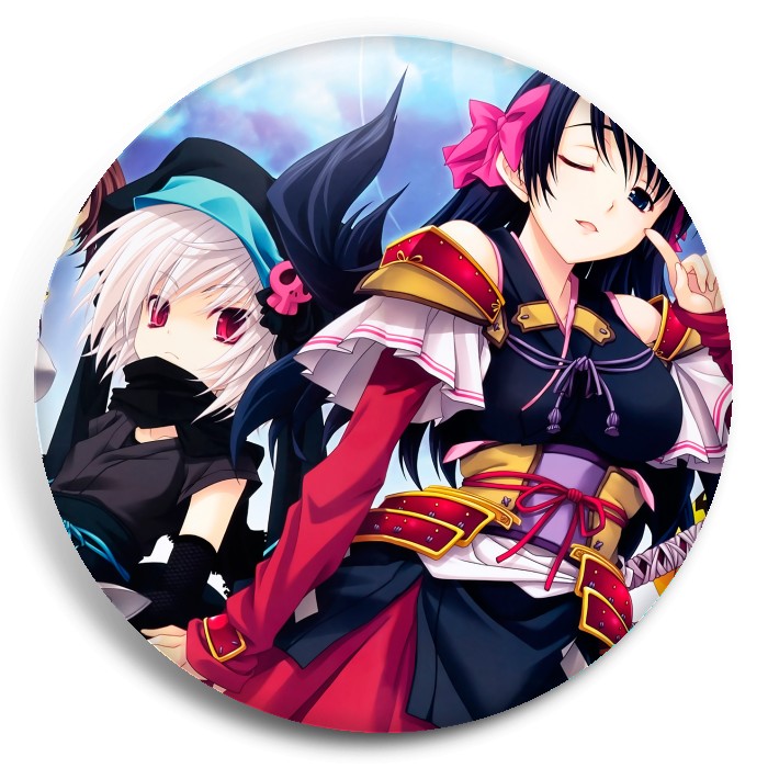 Несколько видов значков с персонажами вселенной Великие помыслы Оды Нобуны.