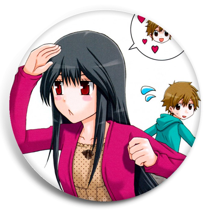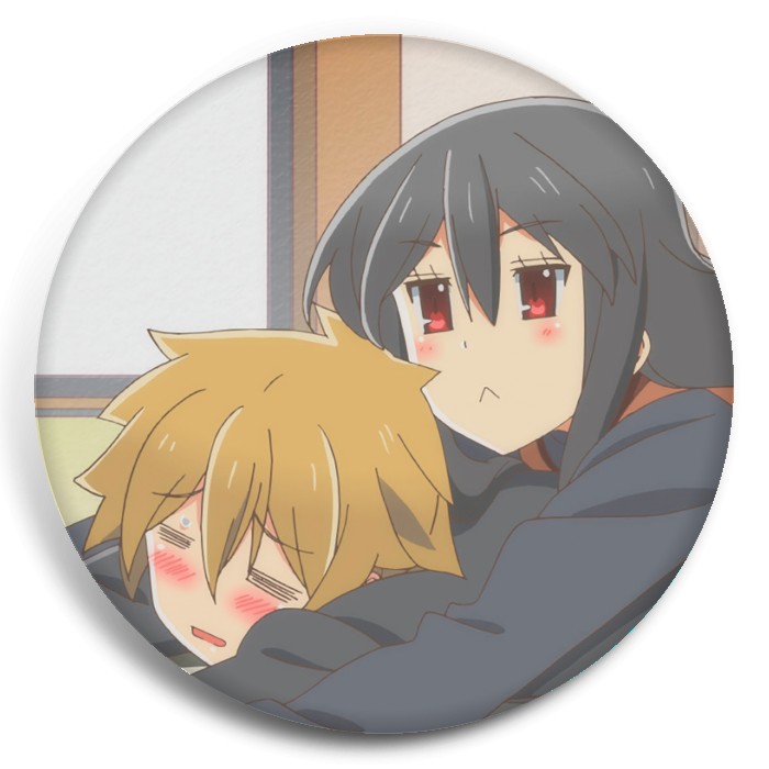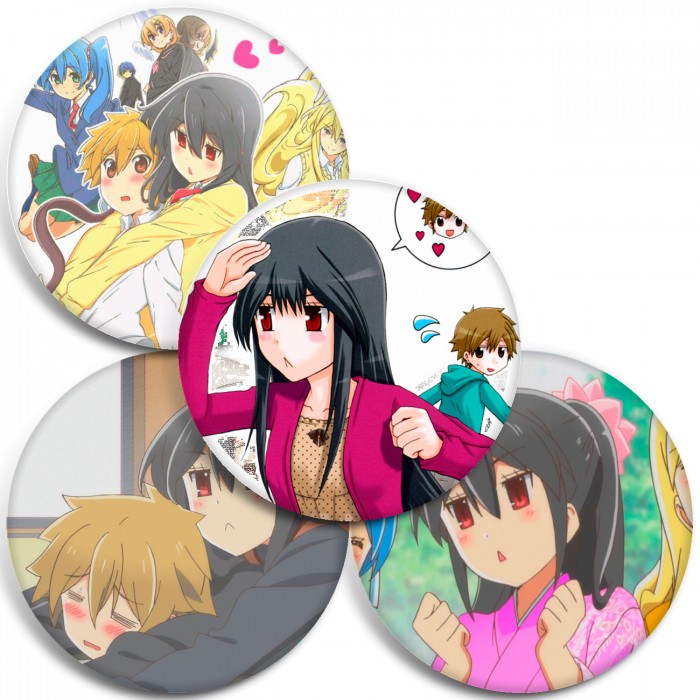 Несколько видов значков с персонажами вселенной Сестра без приглашения.