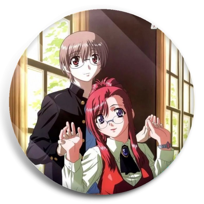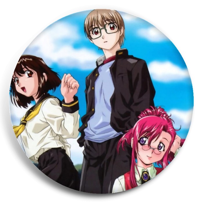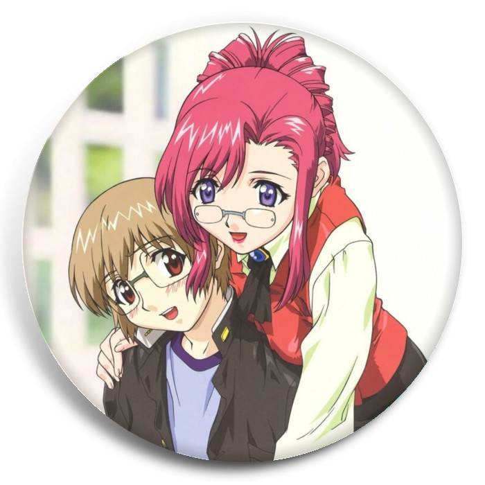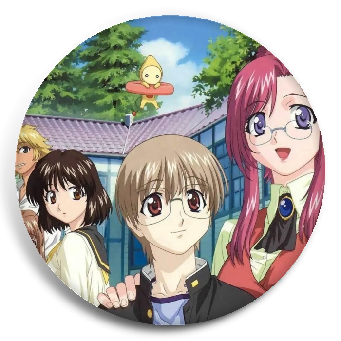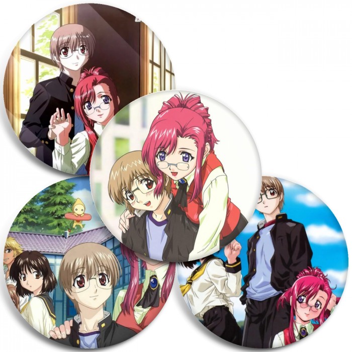 Несколько видов значков с персонажами вселенной Пожалуйста; учитель!.