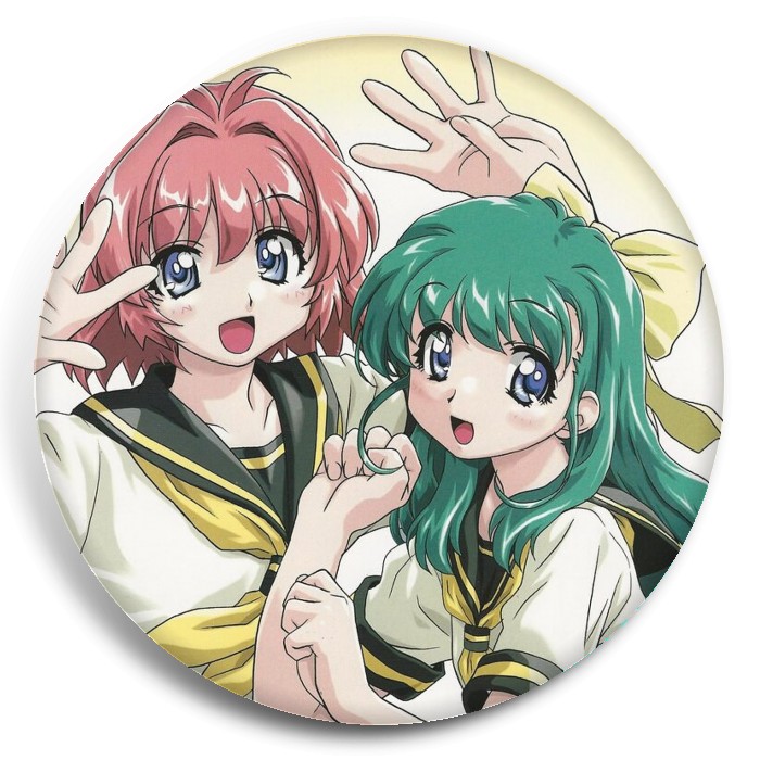 Несколько видов значков с персонажами вселенной Пожалуйста; близнецы!.