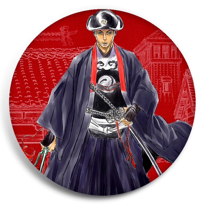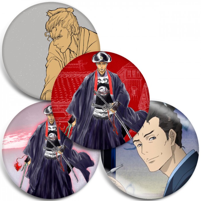 Несколько видов значков с персонажами вселенной Онихэй.