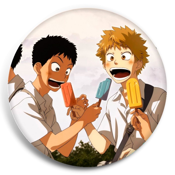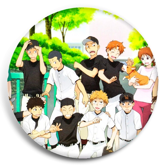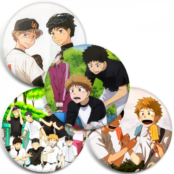 Несколько видов значков с персонажами вселенной Замахнись сильнее.