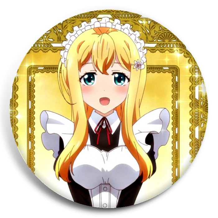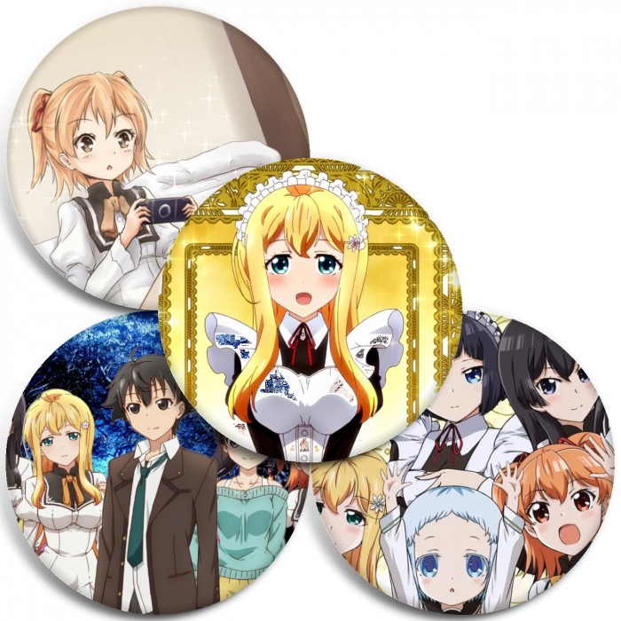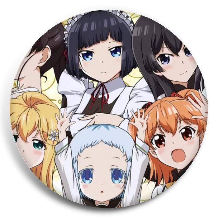 Несколько видов значков с персонажами вселенной Простолюдин в школе благородных девиц.