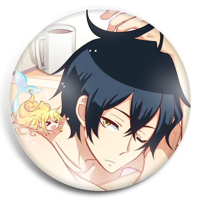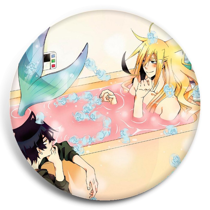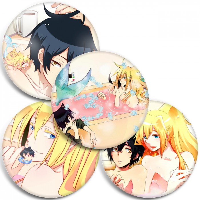 Несколько видов значков с персонажами вселенной Хаос в ванной.