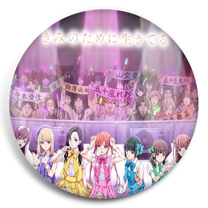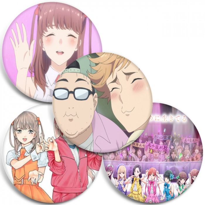 Несколько видов значков с персонажами вселенной Пусть только выступит мой любимый идол в Будокан; и я помру.