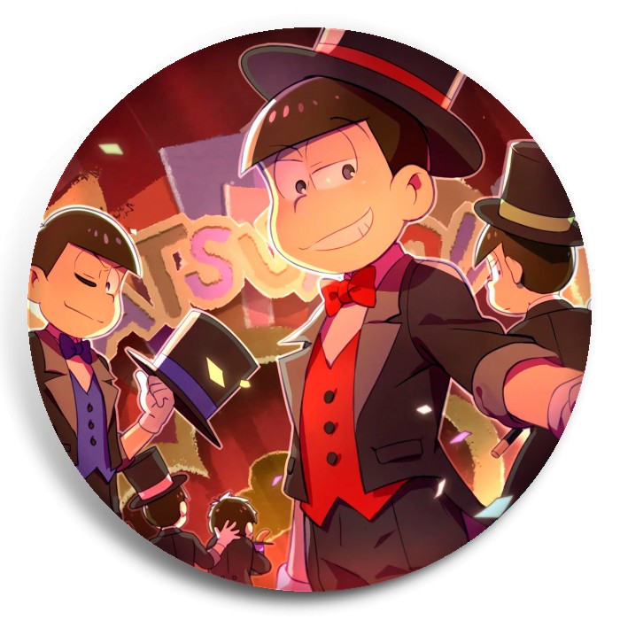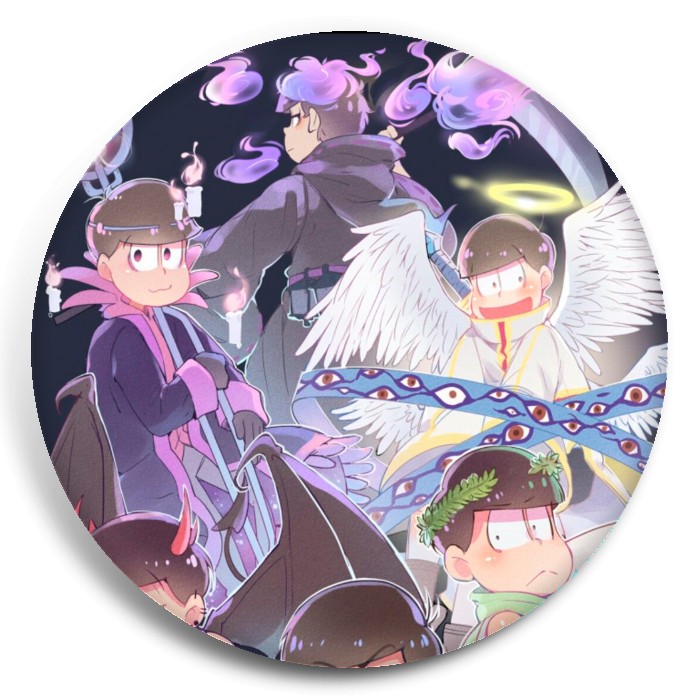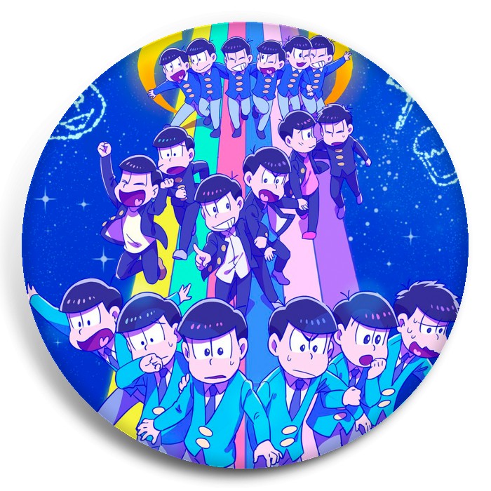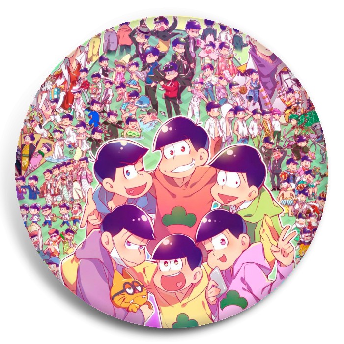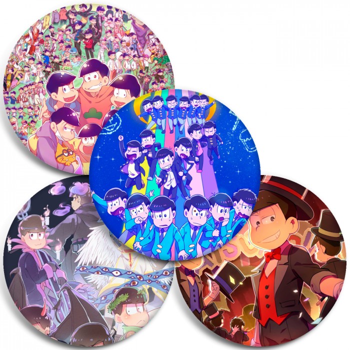 Несколько видов значков с персонажами вселенной Осомацу-сан.