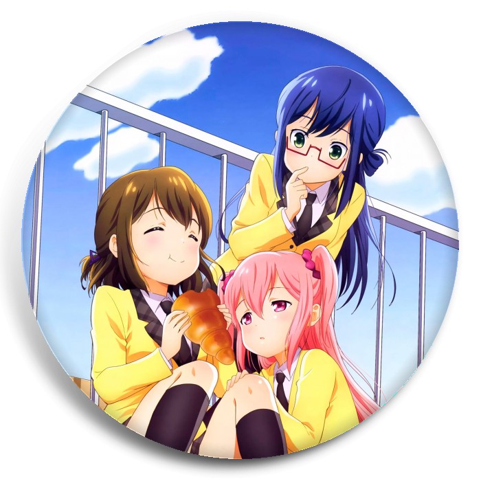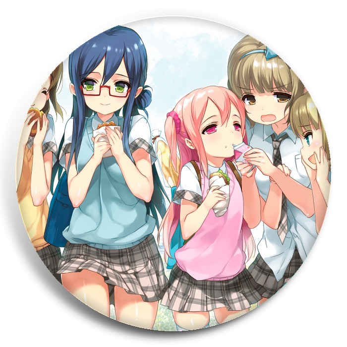 Несколько видов значков с персонажами вселенной Мир через хлеб.