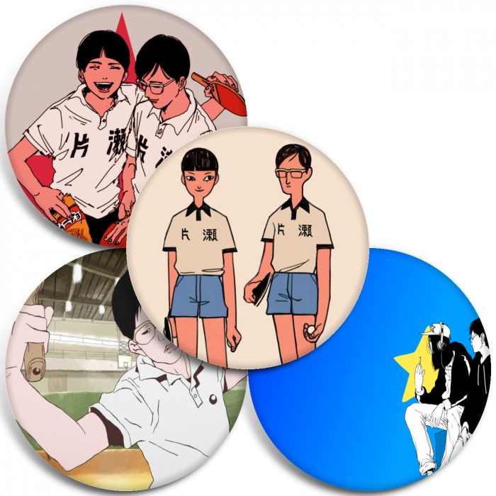 Несколько видов значков с персонажами вселенной Пинг-понг.