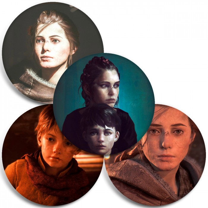 Несколько видов значков с персонажами вселенной A Plague Tale: Innocence.