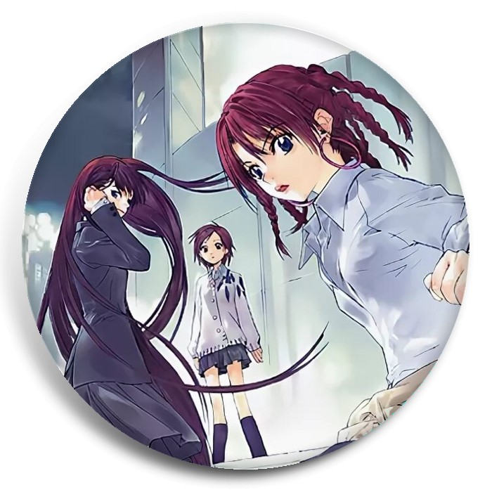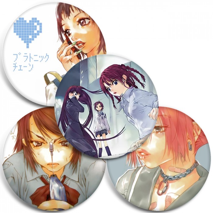 Несколько видов значков с персонажами вселенной Платонические цепи.