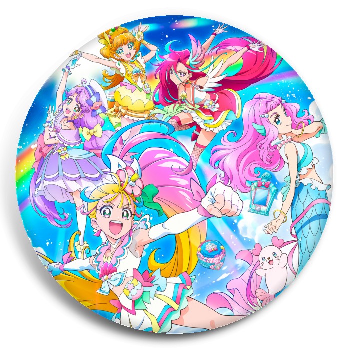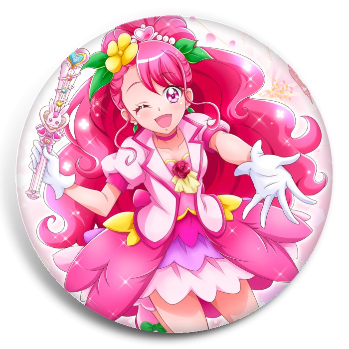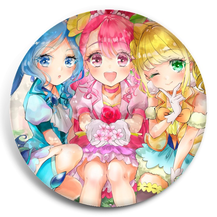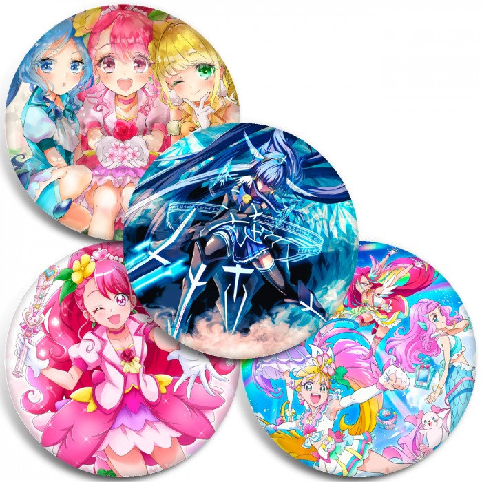 Несколько видов значков с персонажами вселенной PreCure.
