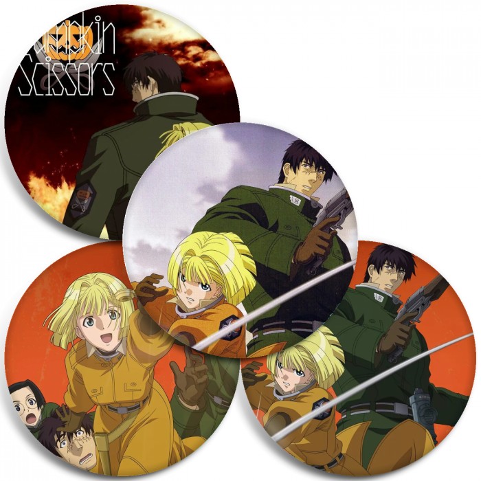 Несколько видов значков с персонажами вселенной Тыквенные ножницы.