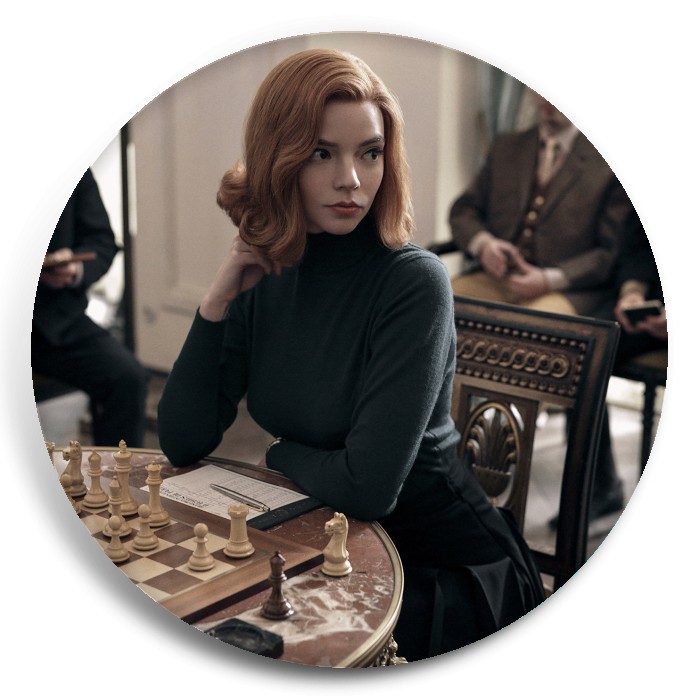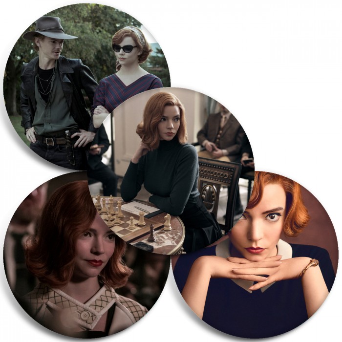 Несколько видов значков с персонажами вселенной Ход королевы.