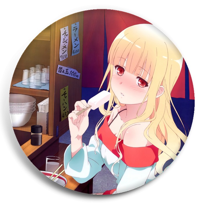 Несколько видов значков с персонажами вселенной Коидзуми любит рамэн.