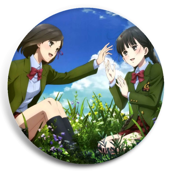 Несколько видов значков с персонажами вселенной Девушка из красной книги.
