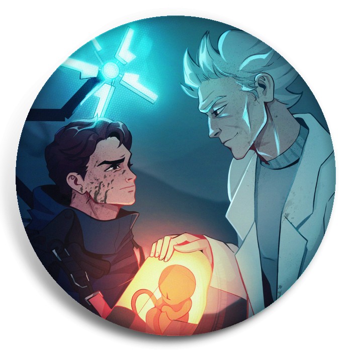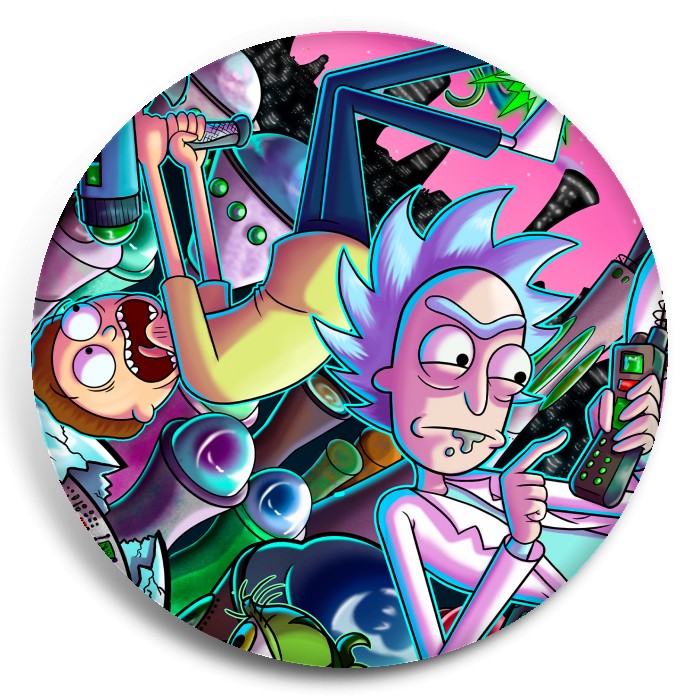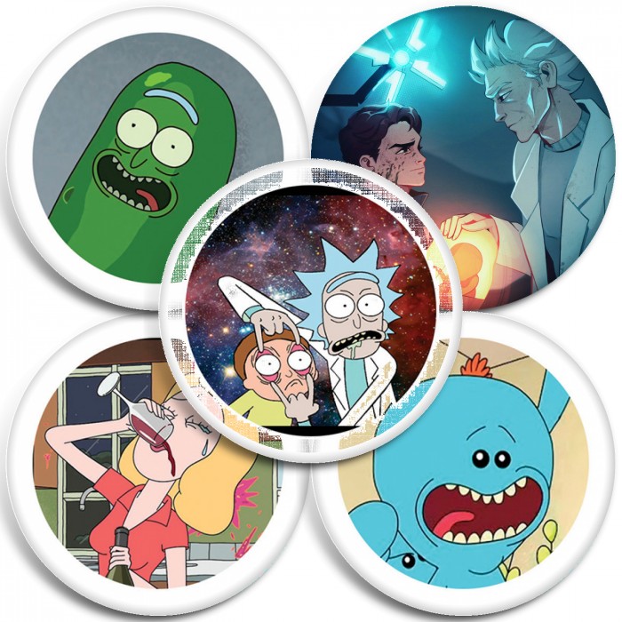 Несколько видов значков с персонажами вселенной Рик и Морти.